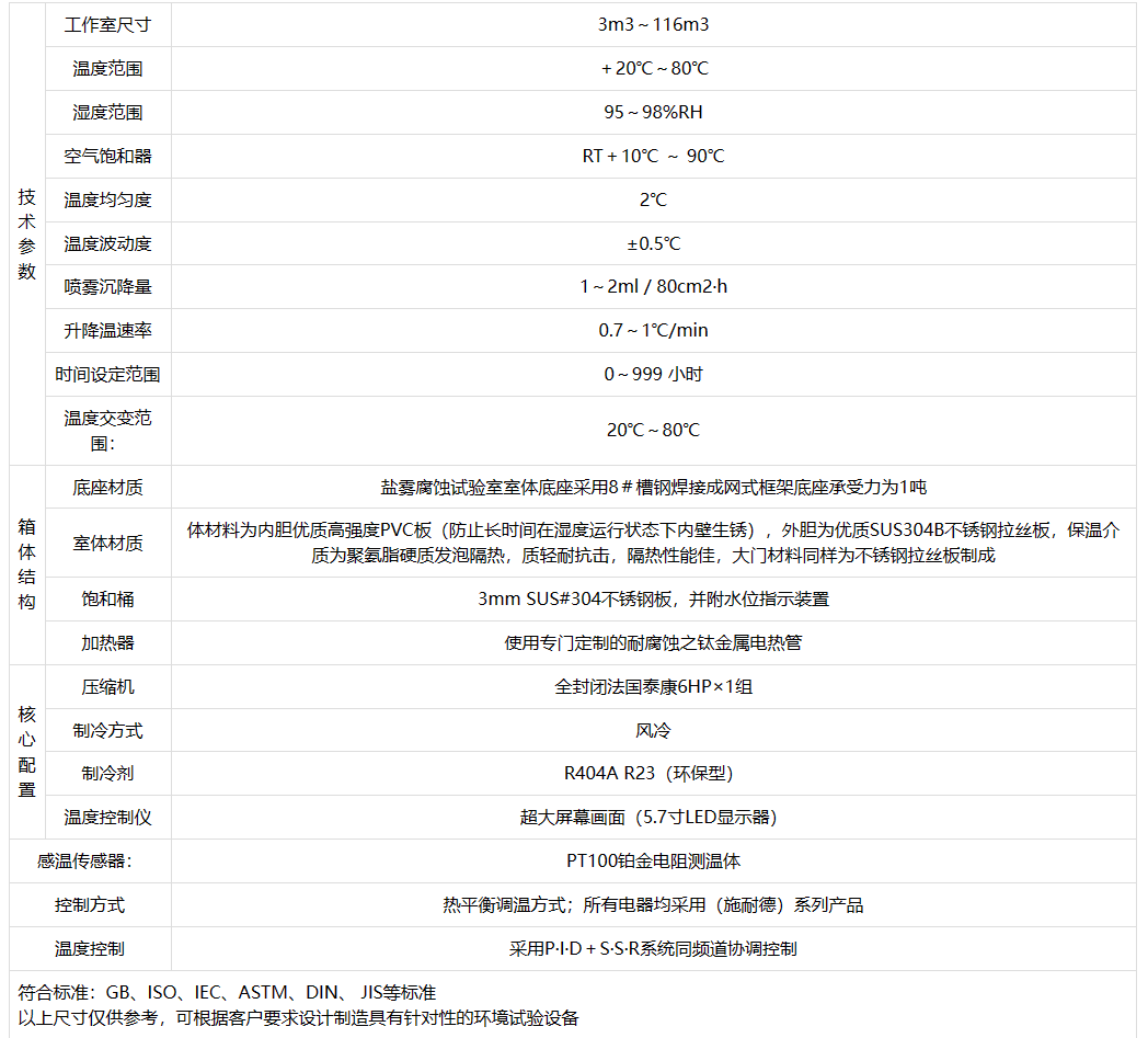 產(chǎn)品簡(jiǎn)介:鹽霧腐蝕試驗(yàn)室突破了傳統(tǒng)鹽霧箱的概念,除具有通常鹽霧試驗(yàn)機(jī)的功能外,還結(jié)合有交變(循環(huán))鹽霧試驗(yàn)的功能,提供了癡狀腐蝕和絲狀腐蝕等試驗(yàn)環(huán)境,具備了熱風(fēng)干燥、濕熱、強(qiáng)制干燥、鹽霧等試驗(yàn)環(huán)境。