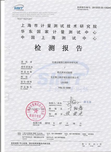 >>淋雨試驗箱檢測報告-上海計量院-交通運輸部
