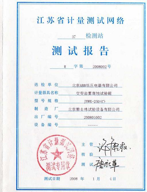 >>鹽霧腐蝕試驗箱測試報告-江蘇計量院-ABB集團