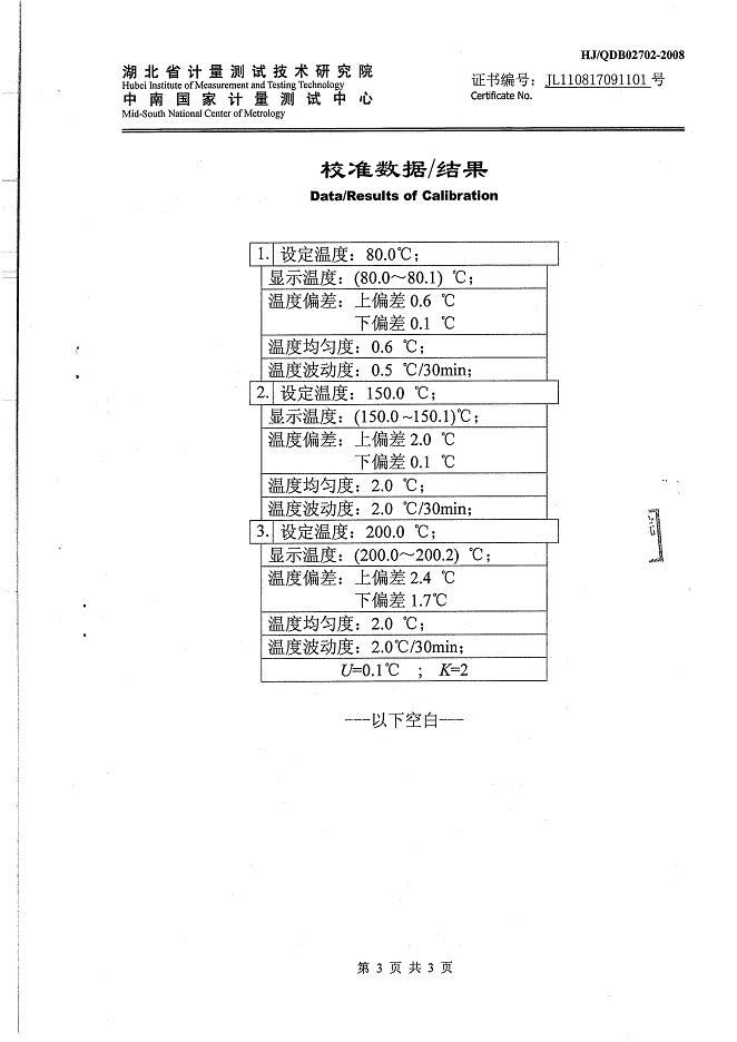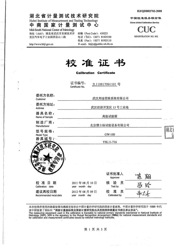 高溫試驗(yàn)箱校準(zhǔn)證書-湖北計(jì)量院-邦迪集團(tuán)