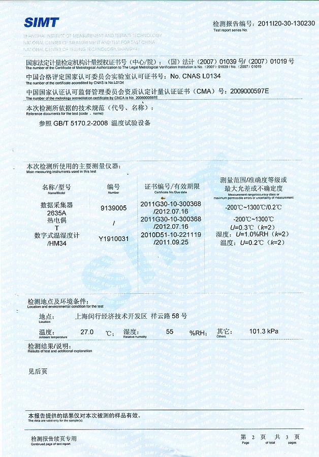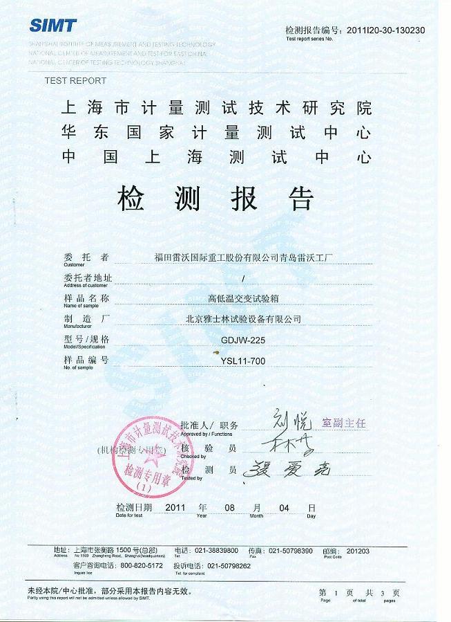 >>高低溫交變試驗箱檢測報告-上海計量院-福田雷沃