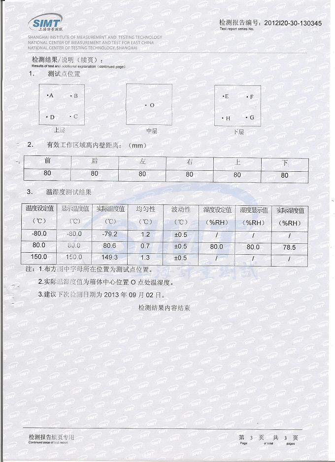 >>高低溫交變濕熱試驗箱檢測報告-上海計量院-國家光電檢測