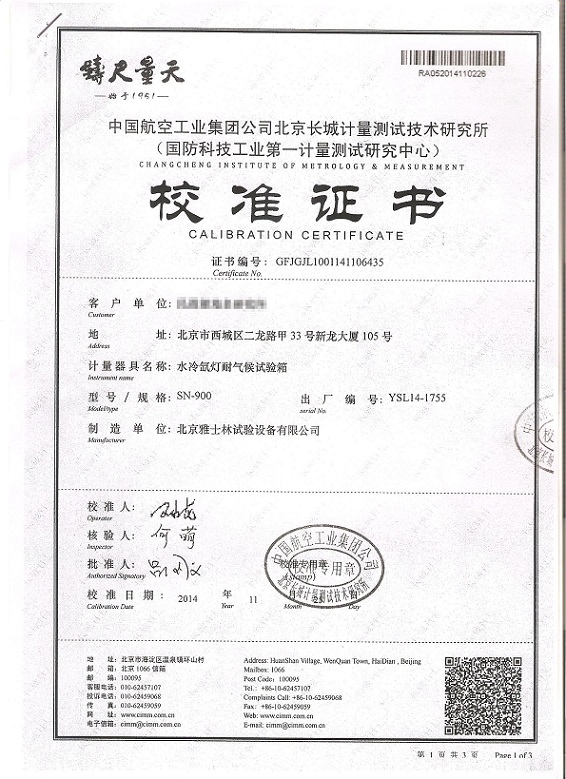 ·氙燈老化試驗(yàn)箱校準(zhǔn)證書模板下載—北京長(zhǎng)城計(jì)量所